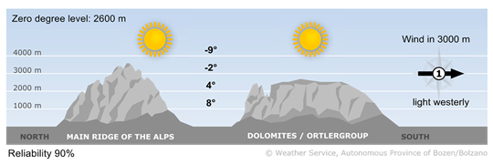Forecast It's bright and sunny all over the region. Apart from morning fog patches in the Bruneck area, the sky is cloudless.